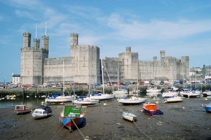 Caernarfon Castle is a colossal medieval fortress and a UNESCO World Heritage site, famous for its unique polygonal towers and banded masonry that were inspired by the walls of Constantinople. Built by Edward I on the site of an earlier Roman fort, it was intended as a grand seat of government and a symbol of royal authority in Wales. The castle remains particularly significant as the location for the investiture of the Prince of Wales. Its formidable gatehouses and enormous battlements offer an immersive look at the power and scale of medieval statecraft, standing as one of the most recognizable and impressively preserved castles in the world.