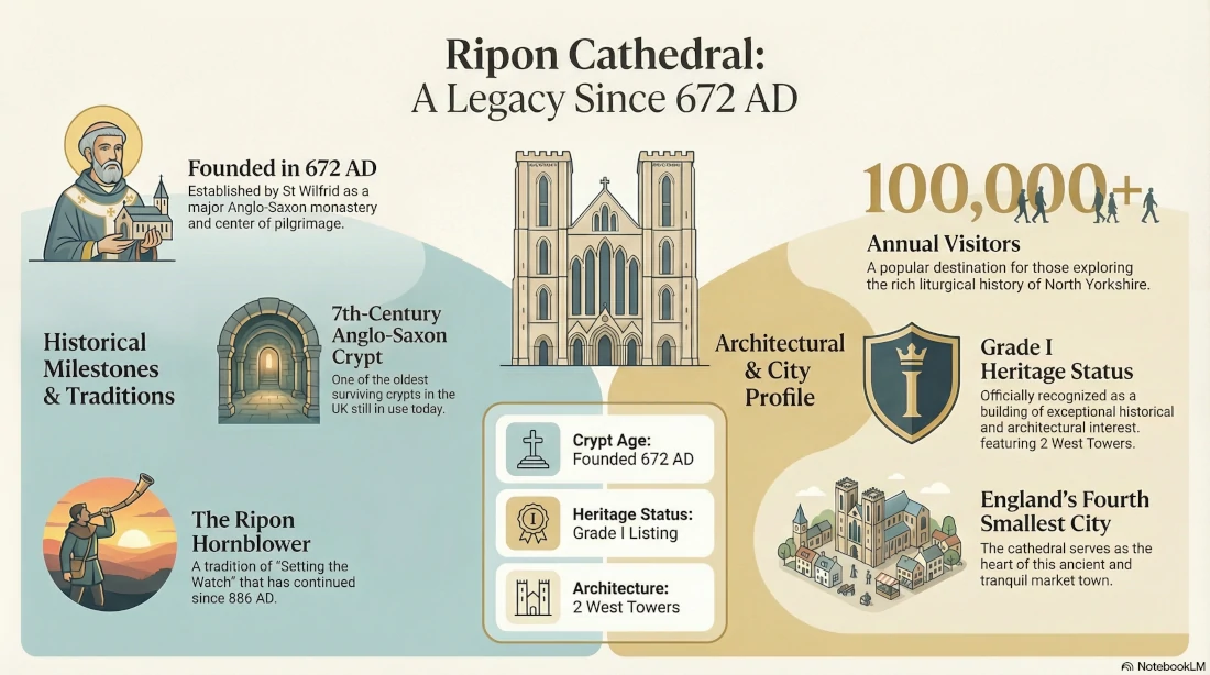 Anglican Christian — founded by St Wilfrid in 672 AD. Home to one of the oldest Anglo-Saxon crypts in England, it maintains a rich liturgical tradition and a welcoming atmosphere as a center of pilgrimage in North Yorkshire.